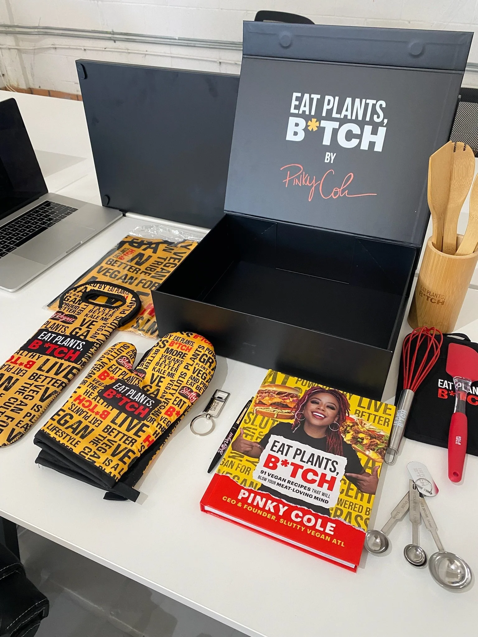 The Challenge: For celebrity entrepreneur and Slutty Vegan founder Pinky Cole's cookbook launch, we needed to create a show-stopping PR box that would capture the attention of 30 prominent cookbook authors, foodie influencers, and celebrities. The challenge was conceptualizing attention-getting, high-quality kitchen items that would create an unforgettable unboxing experience and generate meaningful buzz around the cookbook release.